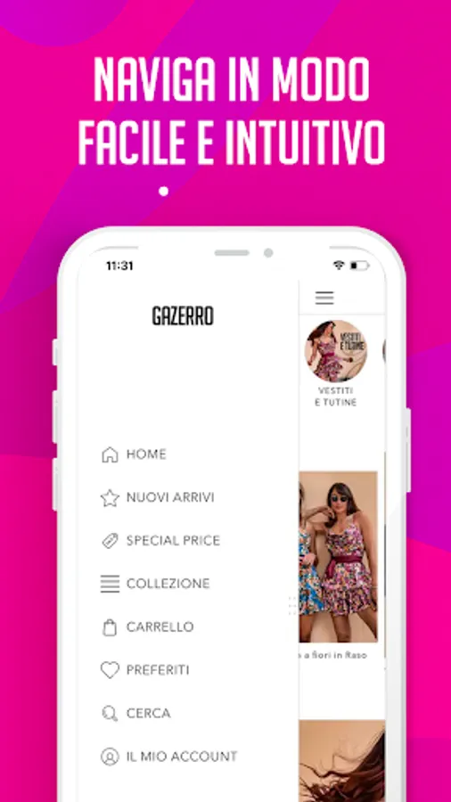 Nell'app di Gazerro puoi trovare facilmente tutti le ultime novità, scoprire la collezione completa e ordinare direttamente online. Il nostro servizio assistenza è sempre a disposizione per offrire un'esperienza unica e coinvolgente.