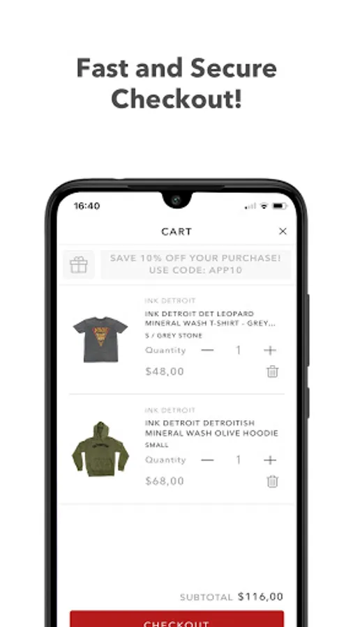 Improve your shopping experience with Ink Detroit App. Be the first to see our latest collections, enjoy in app only discounts, make a wishlist of your favorite items and keep all of your orders and shipping information in one place.