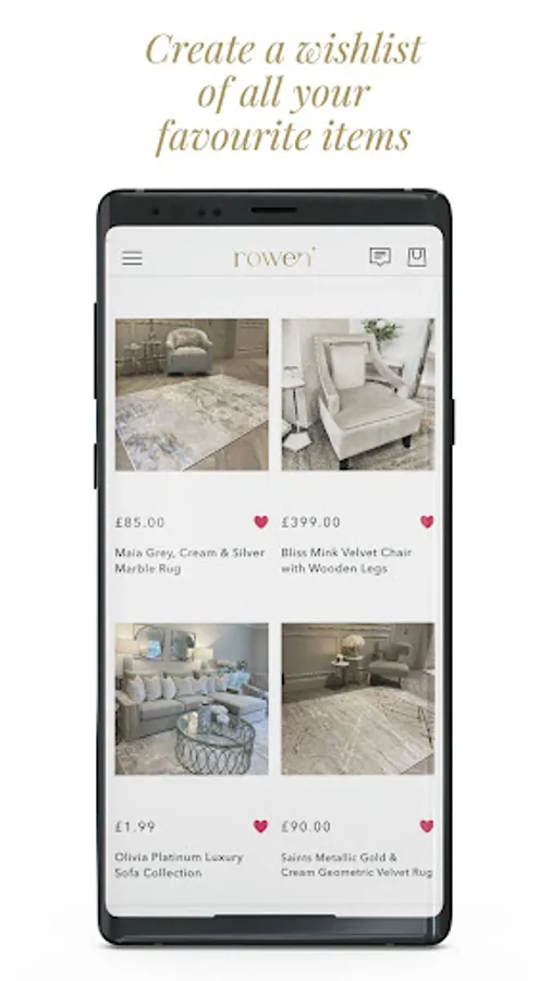 Our homeware collections cover everything from furniture to accessories, with new products launching every week. With the Rowen Homes app you’ll have exclusive access to amazing offers, early launches and the latest homeware drops in your pocket!