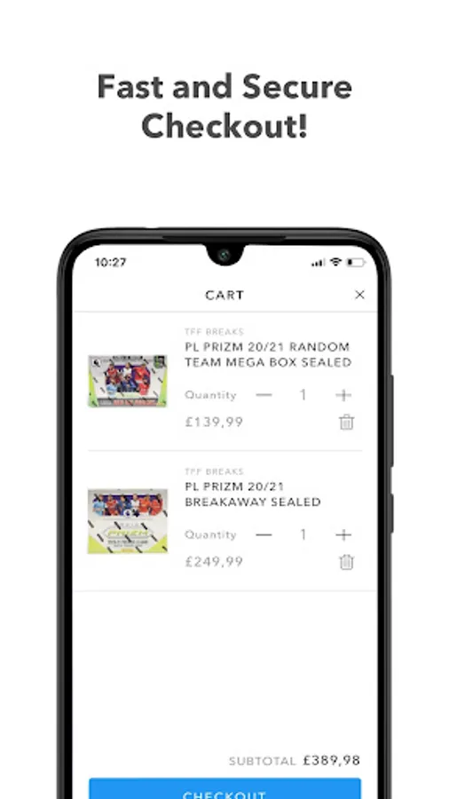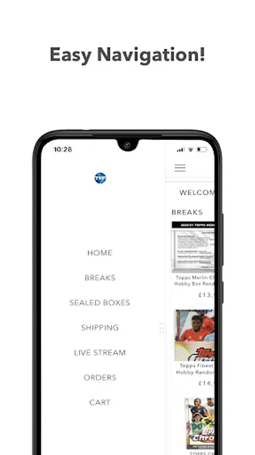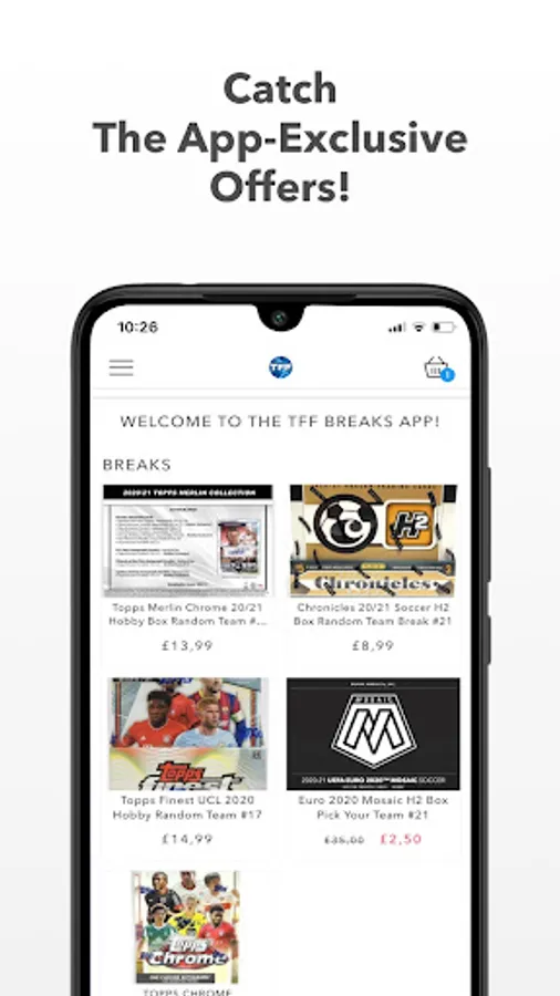 TFF Breaks is a community for sports card fans, mainly soccer/football! Our app allows for our users to get involved into our boxes easily whilst being able to scroll through all of our products seamlessly. Join our community of like minded individuals who love sports trading cards!