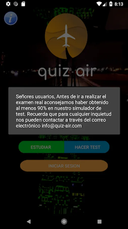 Quiz-Air is the app to help you prepare for the written exam TEEI the Colombian Civil Aeronautics. More than 800 updated questions and answers will help you pass the final exam TEEI and you will have a simulation of the real test so you'll know when you're ready to present. Try it!