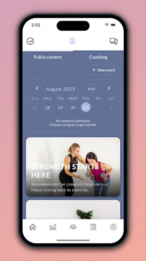 Progressive strength training, core work and development, cardio, yoga and recovery, coaching, video tutorials and community- Join us today !
