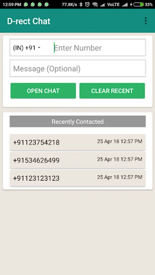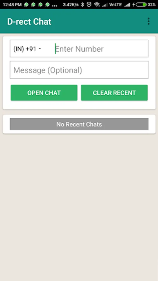 D.rect Chat App is a very handy tool when you need to send a message on a particular number without saving the number.