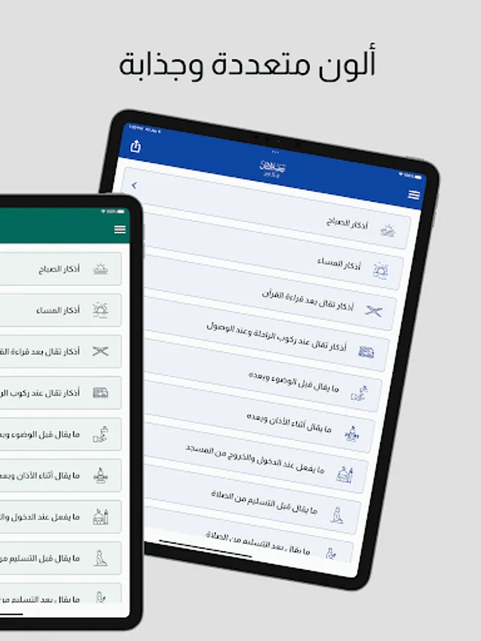 • امكانية مشاركة الأذكار مع الآخرين كنص آو صورة عن طريق وسائل التواصل الاجتماعي