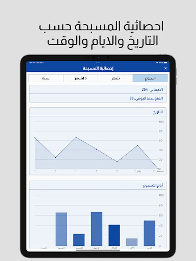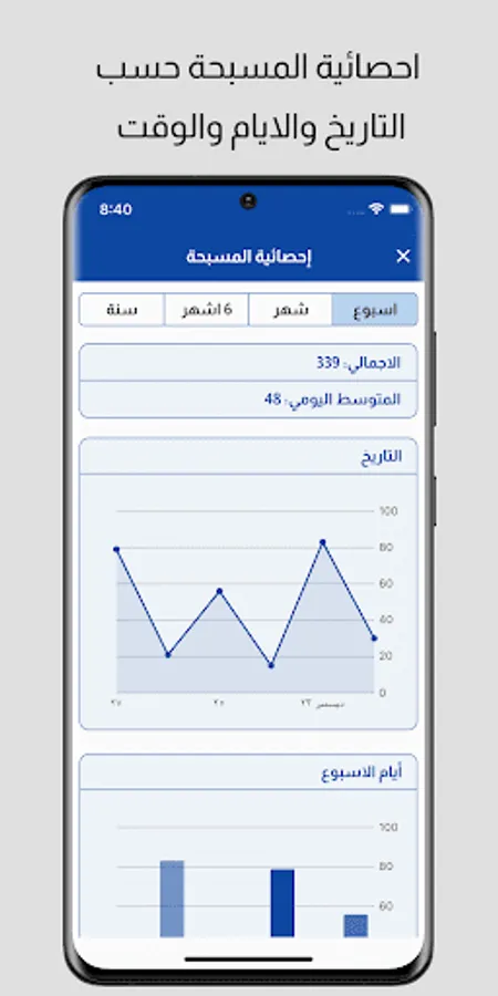• المسبحة مع خاصية العداد المخصص لكل ذكر مع احصائية الاذكار
