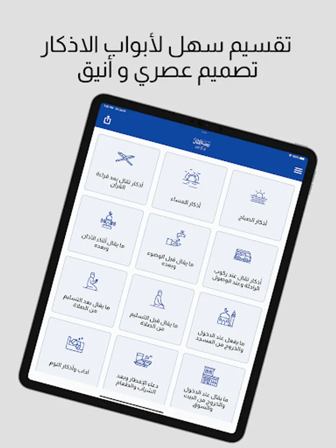 • خاصية الاشعارات للتذكير بأوقات الاتيان بالأذكار
