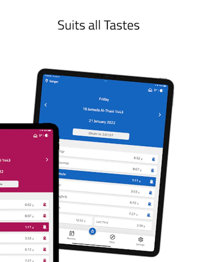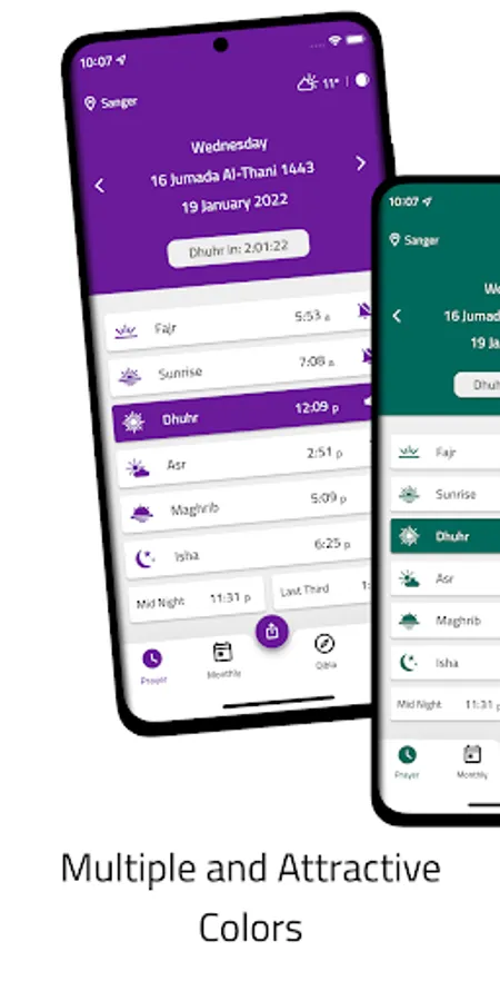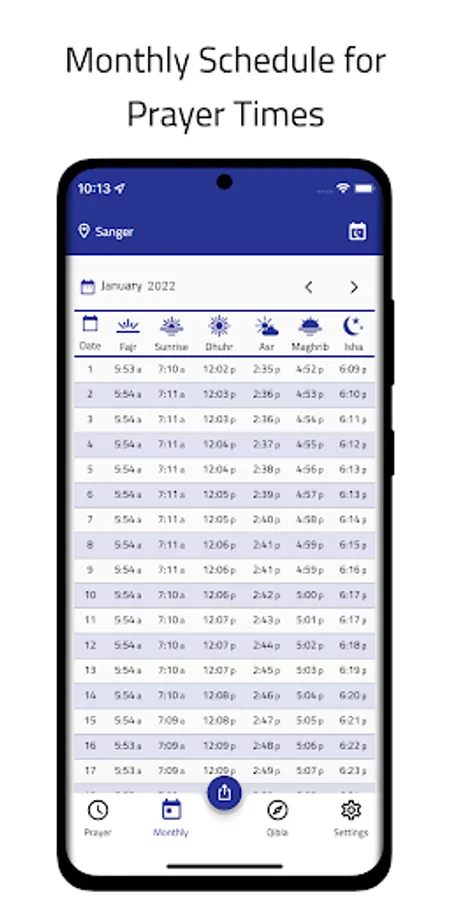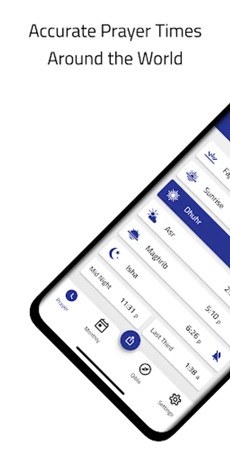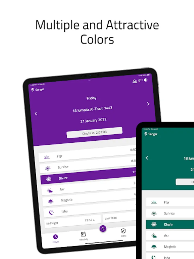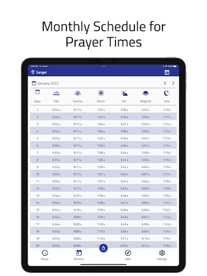 - Display a beautiful and elegant monthly schedule of prayer times with the ability to share it with others as an image via social media