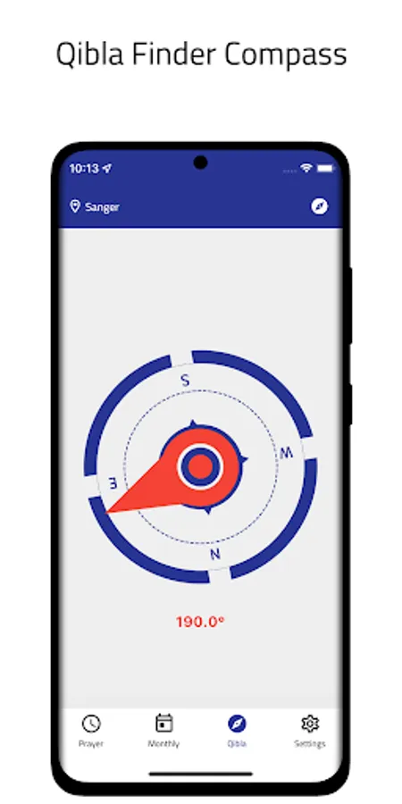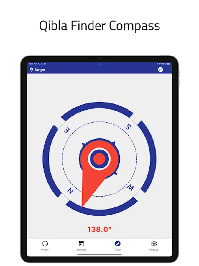 - A compass to determine the Qibla direction for any place in the world according to geographical location