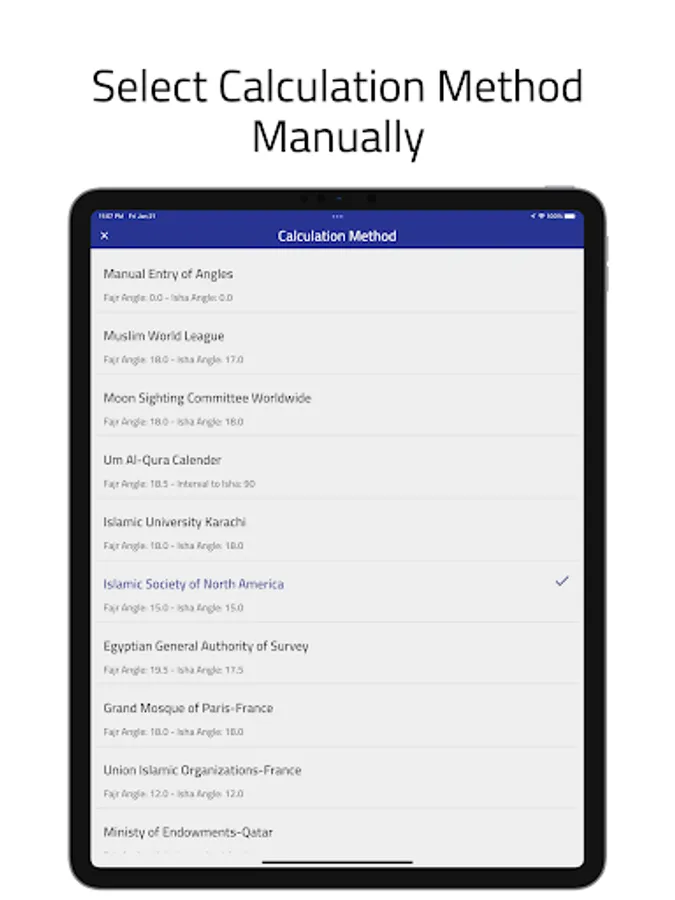 - Automatic selection of the method of calculating prayer times according to geographical location and country, with the possibility of selecting the same manually