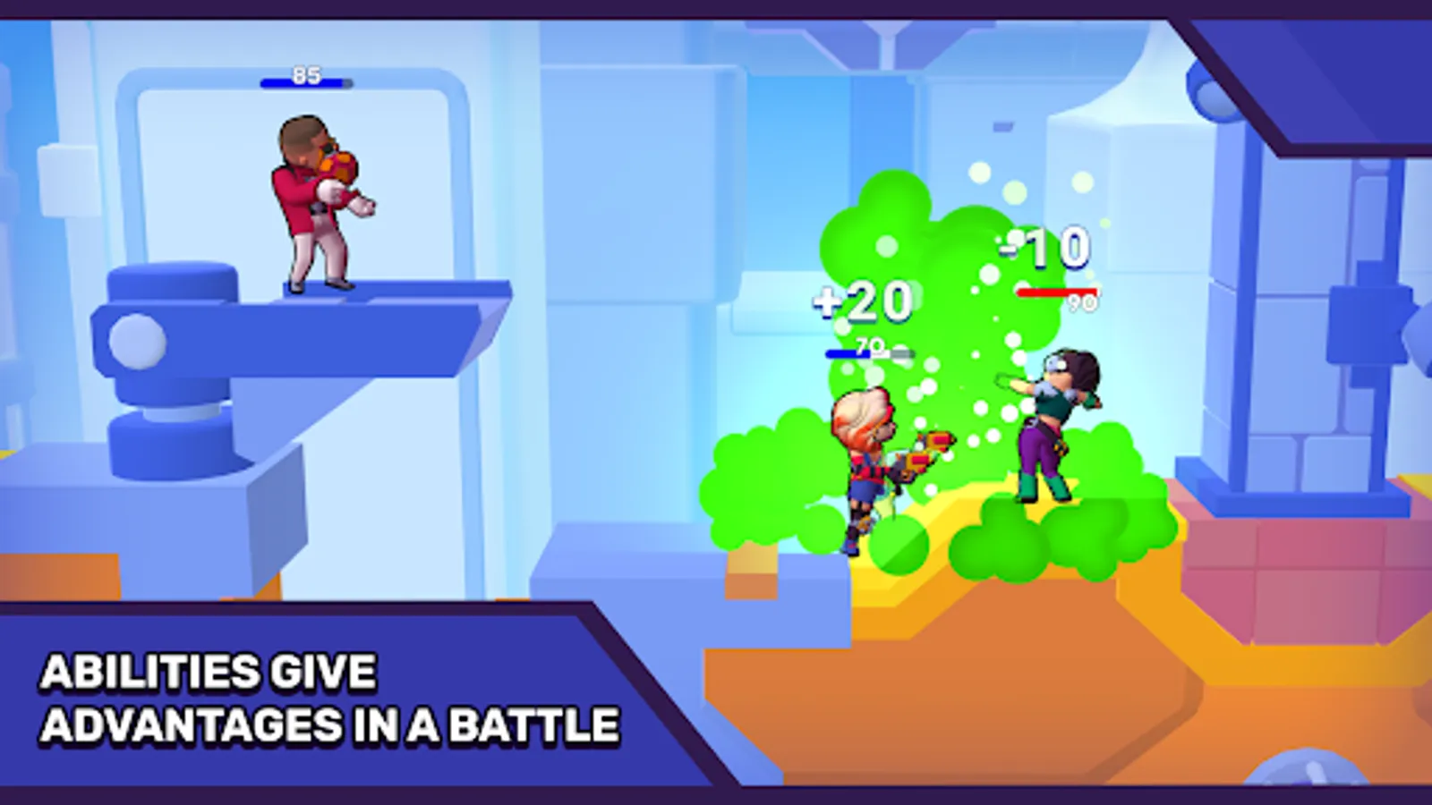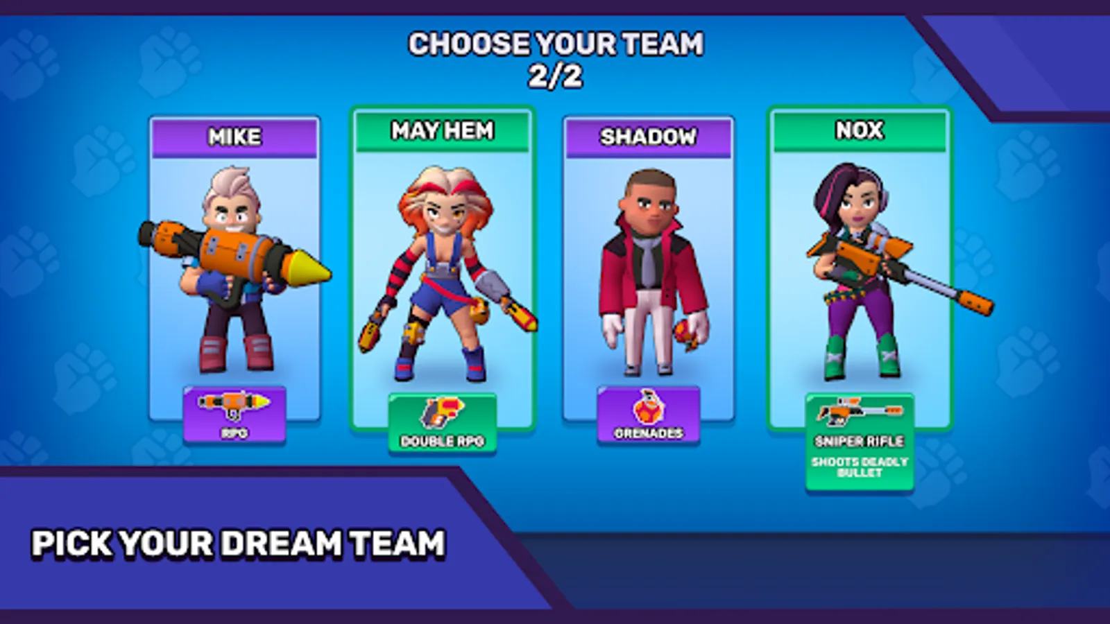 Your team has 2 unique specialists. Each one of them has dangerous and deadly weapon. This incredible duo is capable of turning the entire arena into dust. The opposing team simply has no chance in a battle against these super soldiers!
