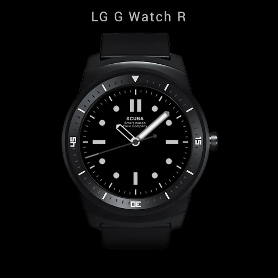 This watch face is designed for ultimate readability in low light situations. Scuba diver watch face turns your Android Wear smartwatch into a sporty dive watch. It works perfectly on the LG G Watch R and other Android Wear devices.