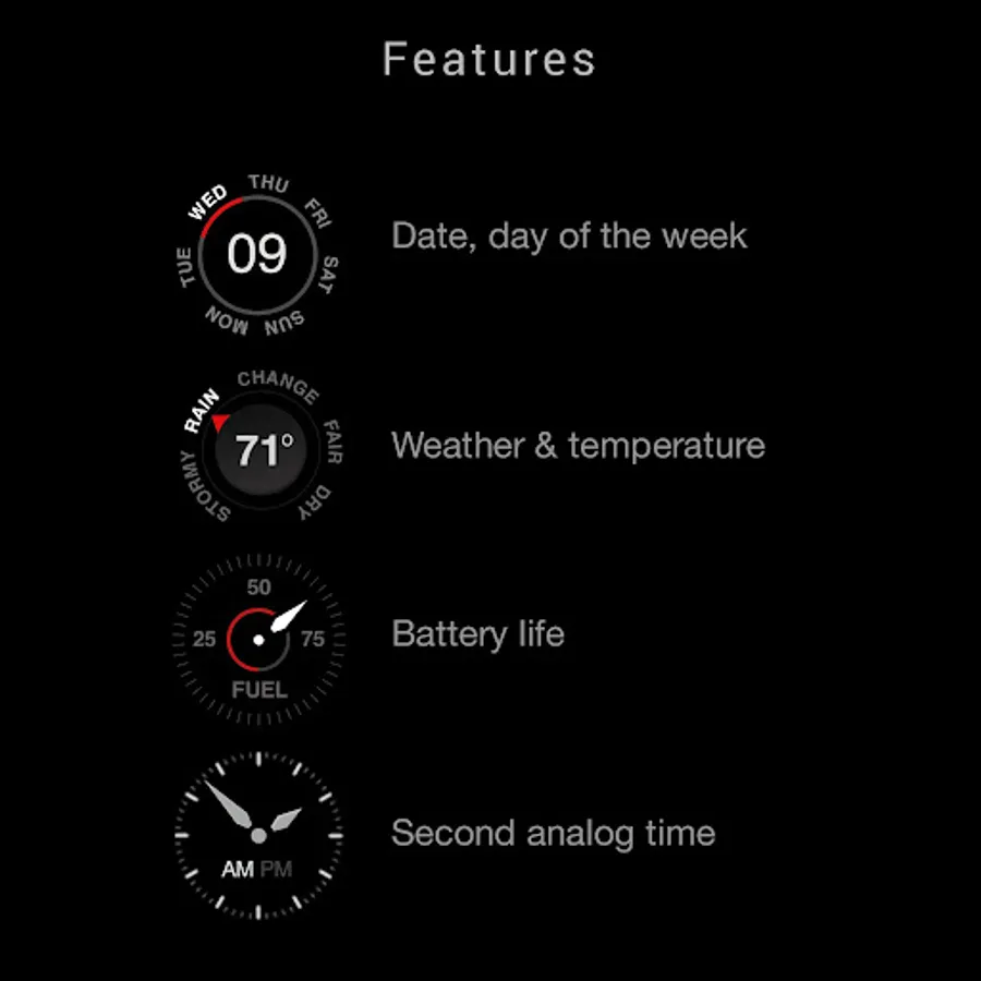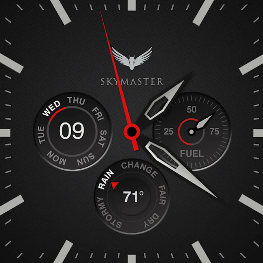 This analog Android Wear watch face (fka as Aviator) unites the character of an aeronautic watch with modern smartwatch functionality.