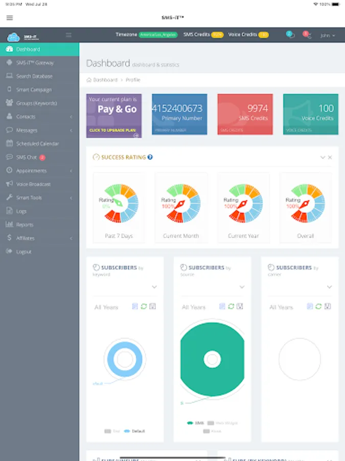 - Jack, subscribes to SMS-iT, chooses his free virtual local or toll-free number, creates his campaigns, syncs his users, and configures several smart features.