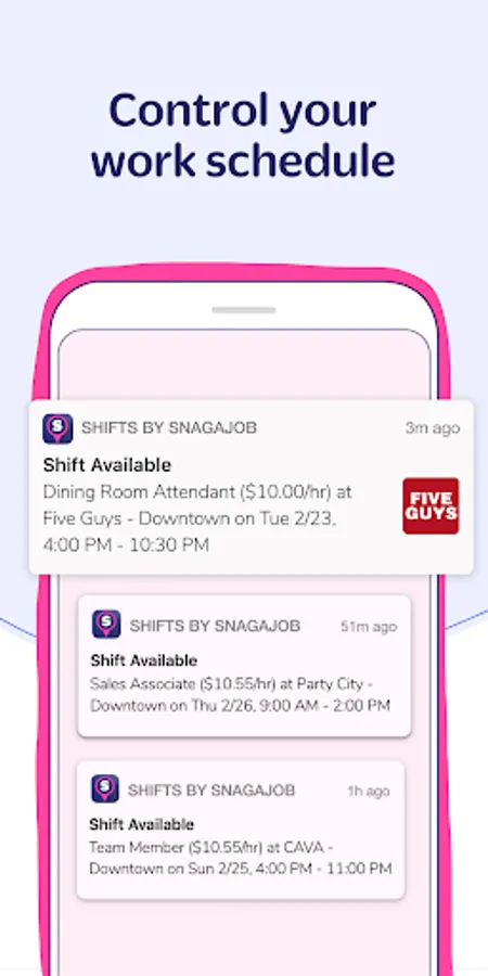 1. Snag a shift - You're instantly alerted when businesses post new shifts that fit your availability. You choose when and where you want to work.