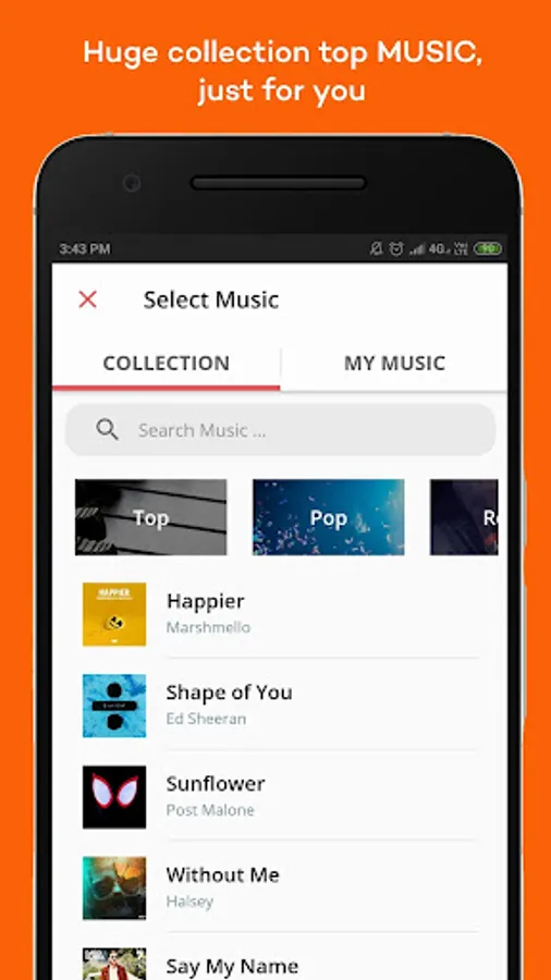 Easily add your favorite music to your videos and photos, find music for instagram story with many tracks from top artists to choose from! With the hottest tracks in every genre, including pop, rock, rap, reggaeton, trap, electronic, R&B, country, and more. Our massive music library is updated daily so all your favorite songs are available to add to your photos and videos.