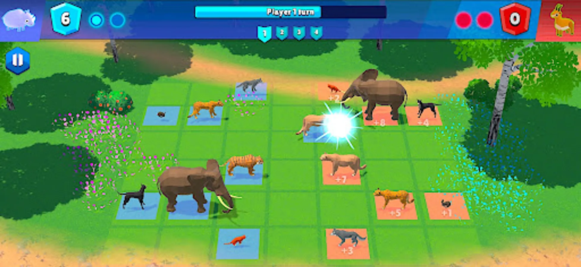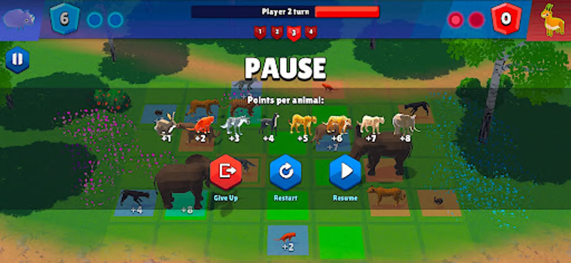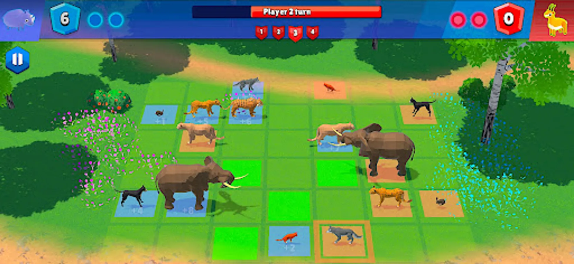 • In each round, players have two consecutive board moves to capture the opponent's animals.