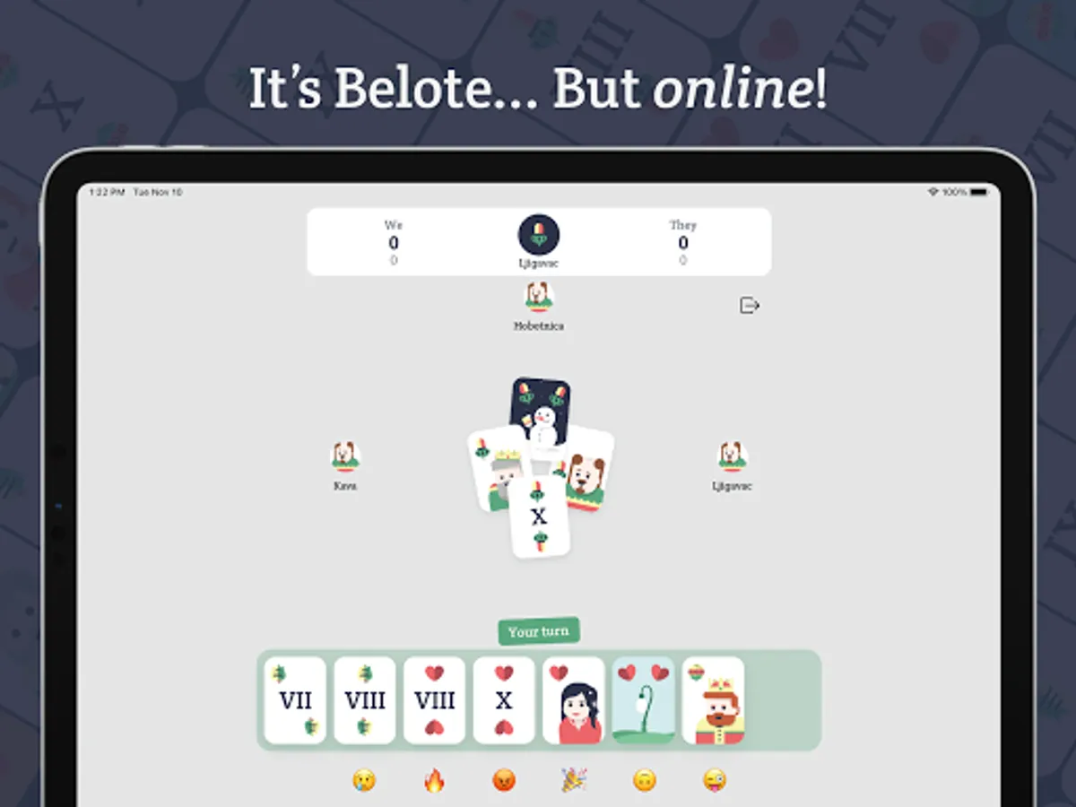 The Croatian version of the game Belote (Bela). Multiplayer and completely free! Now supports Hungarian playing cards!