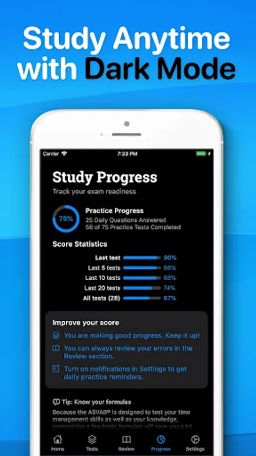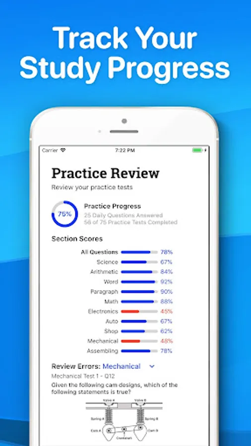 - Track Past Test Results - Individual tests will be listed with pass or fail and your mark