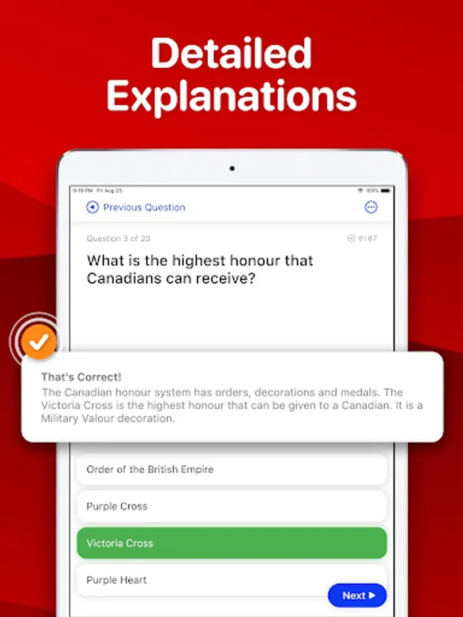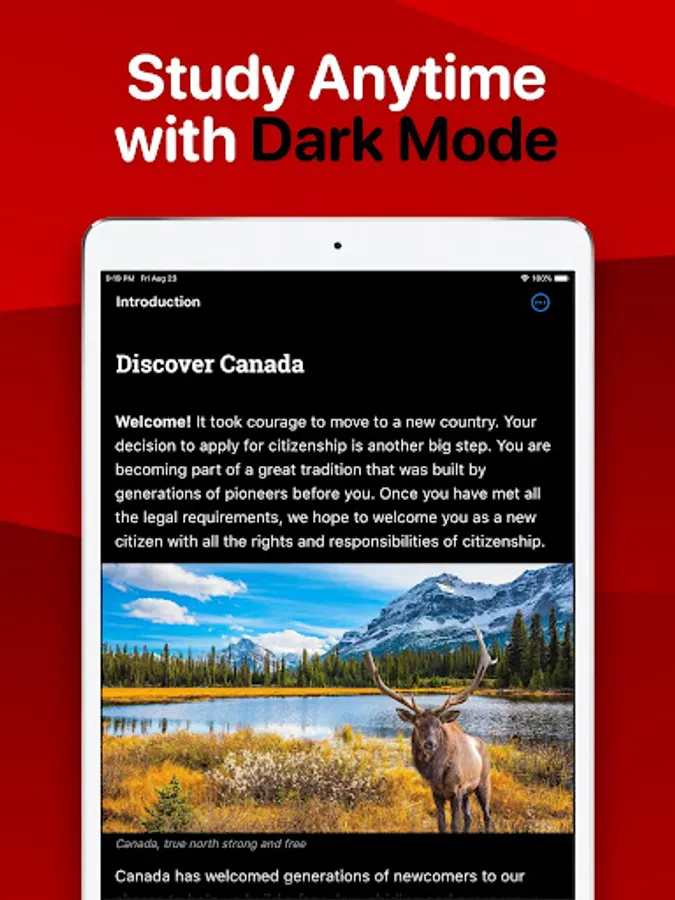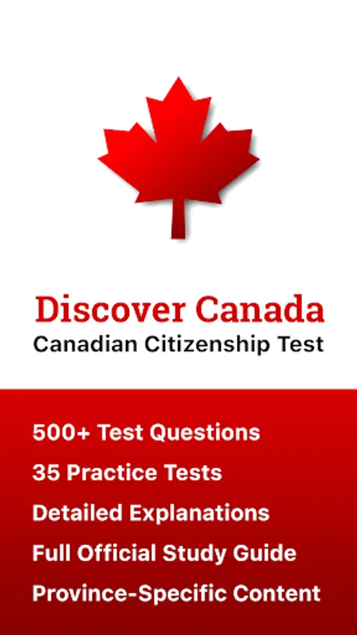 You’ll be tested on information in the official Discover Canada: The Rights and Responsibilities of Citizenship handbook included in this app - this is the only book recommended to prepare for the test. You’ll have 30 minutes to answer 20 questions.