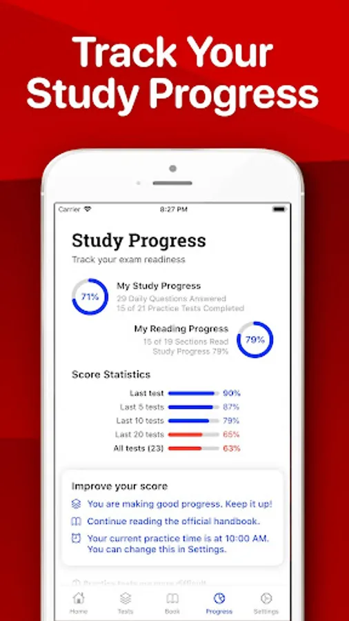 - Track Past Test Results - Individual tests will be listed with pass or fail and your mark