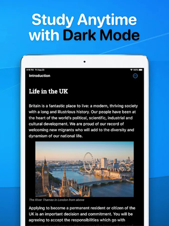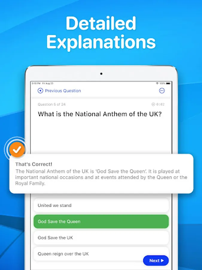 You’ll be tested on information in the official handbook for the Life in the UK Test included in this app - this is the only book recommended to prepare for the test. You’ll have 45 minutes to answer 24 questions.