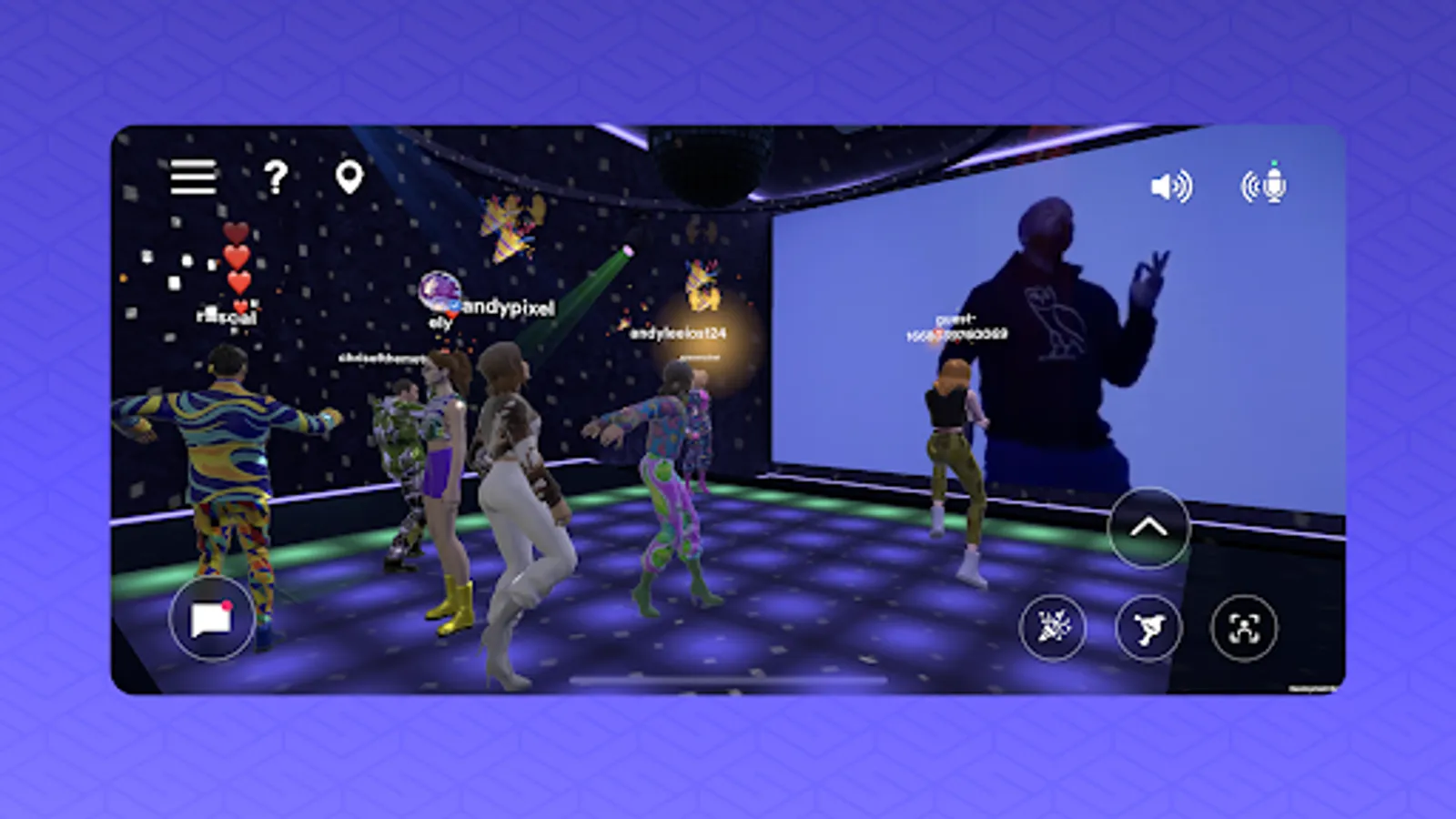 - Live events: Stream live video onto huge metaverse-sized screens and interact in entirely new ways with your community.
