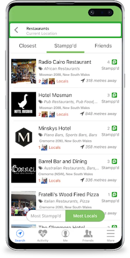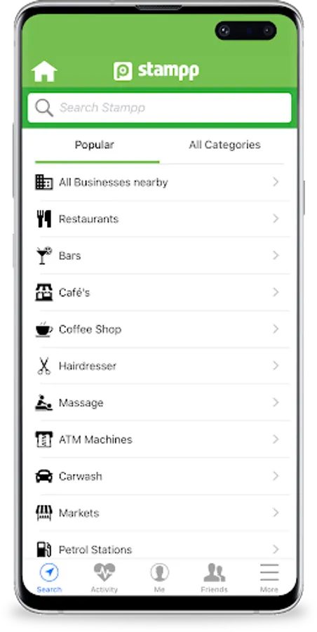 • Filter search results by closest to you, most Stampp’d businesses by everyone on the platform or most popular by locals in the area, or the businesses your friends use and why?