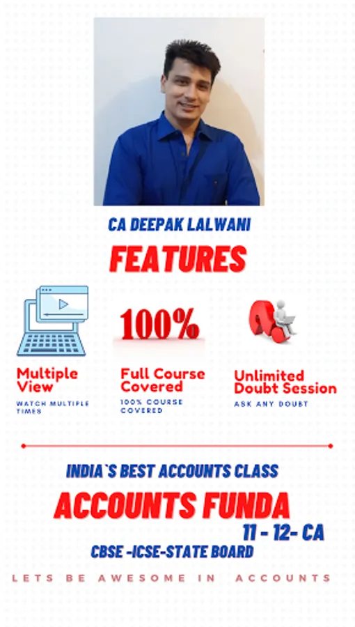 Download Accounts Funda to Study Class 11 / 12 Accounts under Guidance of CA Deepak Lalwani.