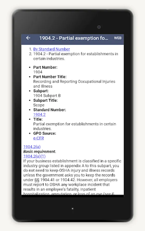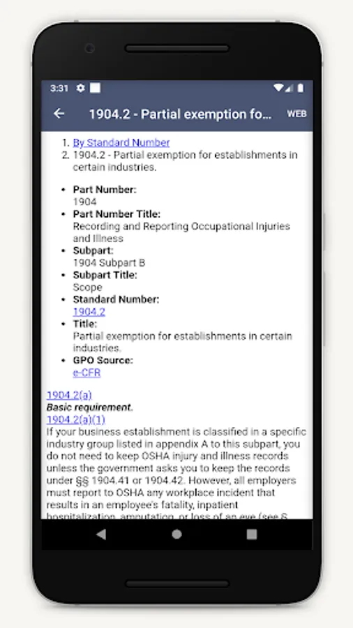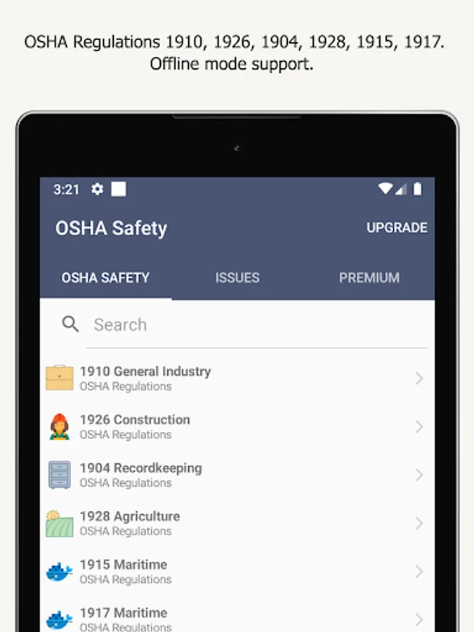 The app is designed to be user-friendly, with a clear and concise presentation of the regulations. The offline mode feature means that you can access the information you need even in remote locations, without requiring an internet connection. Whether you're an employer, a safety professional, or a worker, this app is an essential tool for ensuring compliance with OSHA regulations.