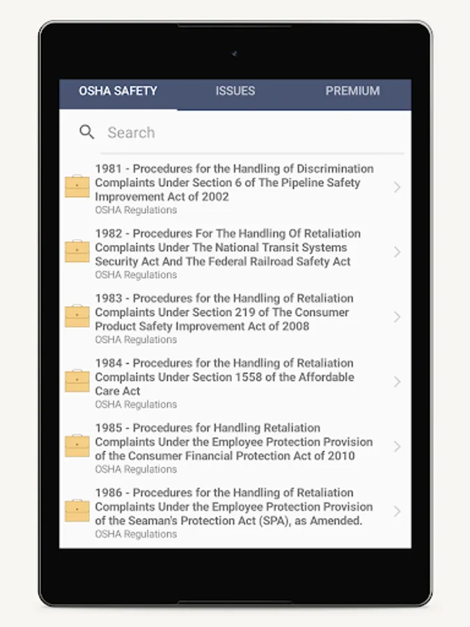 With OSHA Safety Regulations app, you can stay up-to-date with the latest compliance requirements and guidelines. The app covers the key OSHA regulations, including: