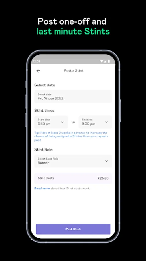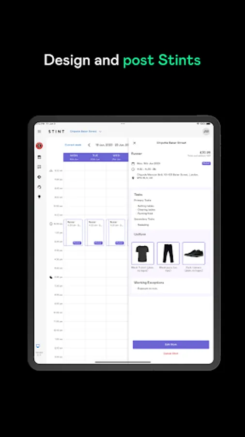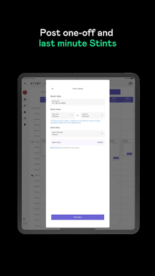 - Stinters work during your busiest periods - for Stints as short as 2 hours.