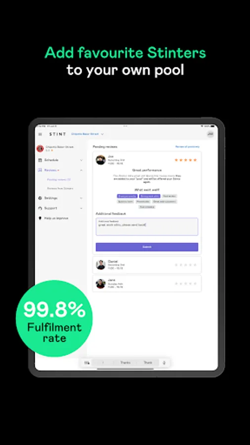 3. Rate Stinters: Our matching algorithm shows your upcoming Stints to those you rated highly.