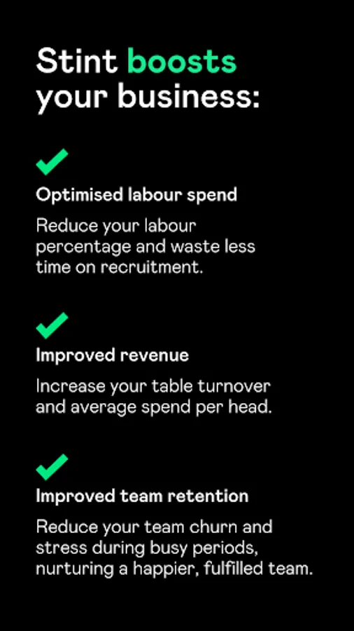 - Optimised labour spend - reduce your labour percentage and waste less time on recruitment.