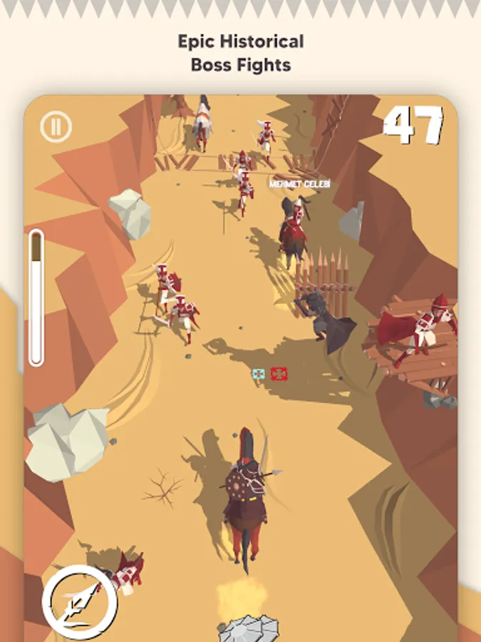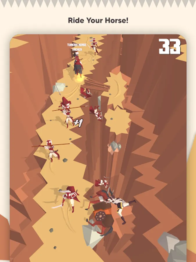 Ride to Victory is a Battle of Ankara inspired endless 3D running game where you try to slay the most number of infantry with your swords, arrows and spears. Running over enemies will also slay them, but be aware of the sneaky enemy archers and steer your mount out of danger.