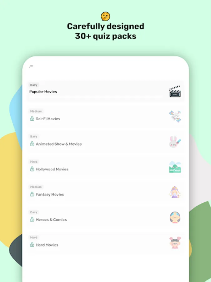 There is 30+ different topics and difficulty levels, which includes 12 questions in every pack, in the game and we add new quiz packs every weekend.