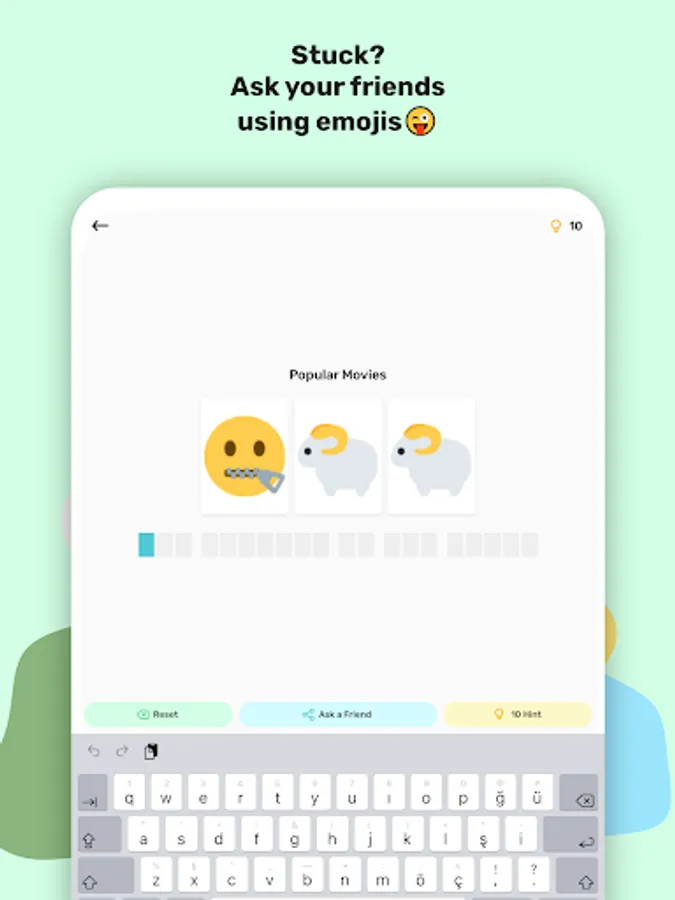 If you got stuck, don't worry, you can share the question with your friends as emojis in your favorite chatting app. Because emojis are awesome and work on everywhere!