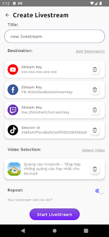 We support broadcasting simultaneously to 20 different platforms: Facebook, YouTube, Tiktok, Twitch,... or e-commerce platforms: Shopee, Tiki, Lazada,... All you need is a pre-recorded video and a StreamAgain account, it's easy to schedule & live stream pre-recorded videos as well as real-time streaming. Our software brings customers 3 GREAT BENEFITS: