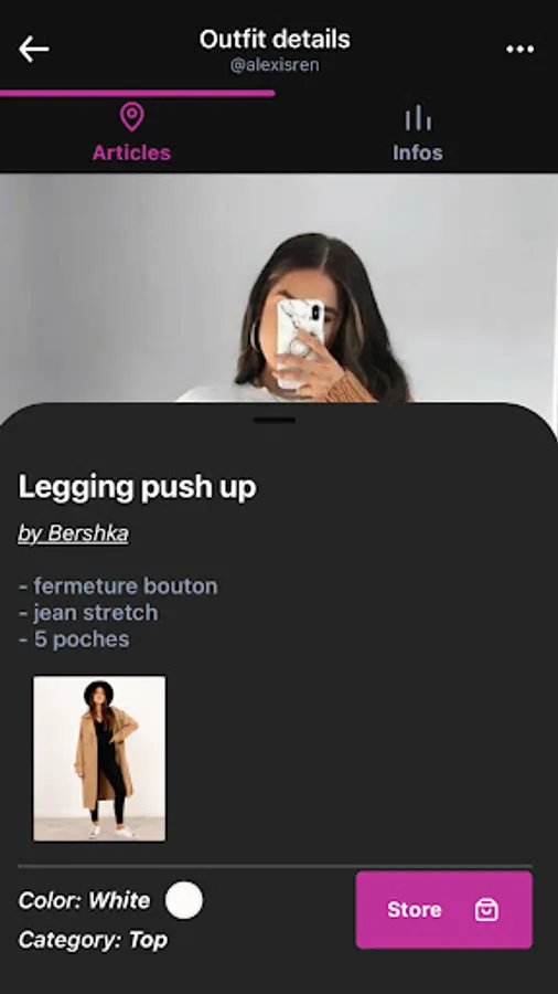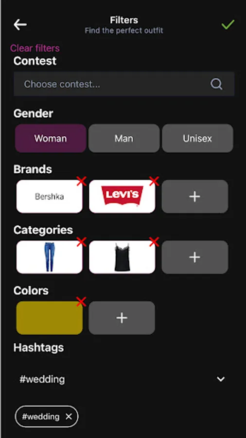 - Find inspiration among thousands of outfits thanks to an advanced filter system: by brand, type of item, color, etc.