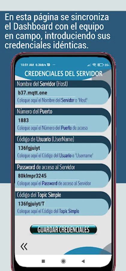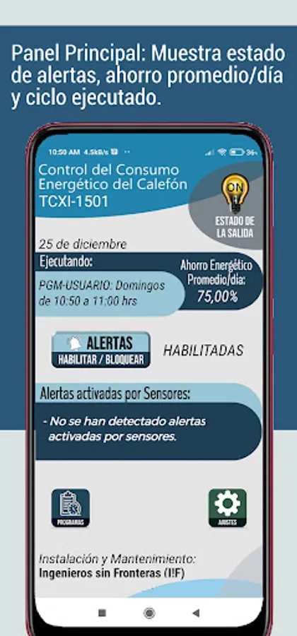 From this application, the operation of the device is controlled and the information generated in the field is received, in real time, such as alerts and operating parameters. You can also change the operating parameters of the equipment from this Control Panel. You can enable or block the issuance of push alert messages and manage all the equipment's operation.