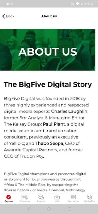 BigFive Digital was founded in 2018 by three highly experienced and respected digital media experts: Charles Laughlin, former Snr Analyst & Managing Editor, The Kelsey Group; Paul Plant, a digital media veteran and transformation consultant, previously an executive of Yell plc; and Thabo Seopa, CEO of Awande Capital Partners, and former CEO of Trudon Pty.