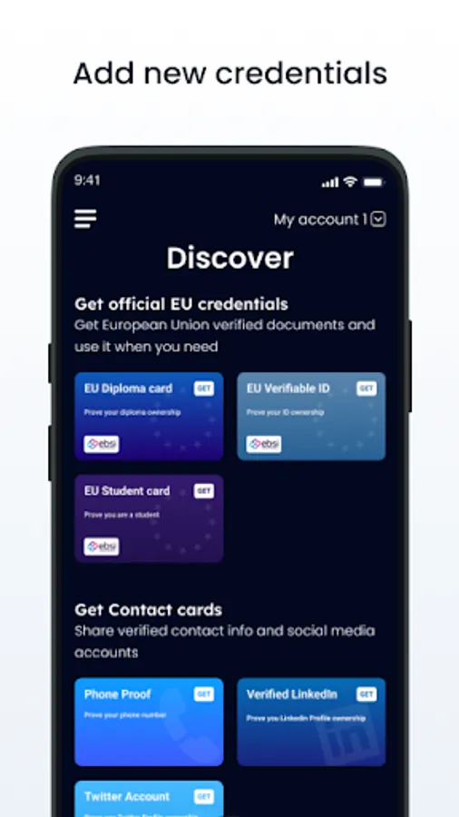 This app is the digital version of your wallet. Collect attestations, certificates, membership cards, permits, identity passes, loyalty cards, payment cards, tickets and diplomas issued by institutions, companies, universities and associations. These signed electronic documents prove your identity and your rights to third parties.