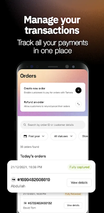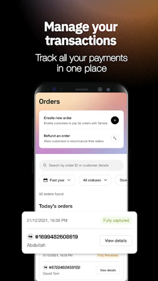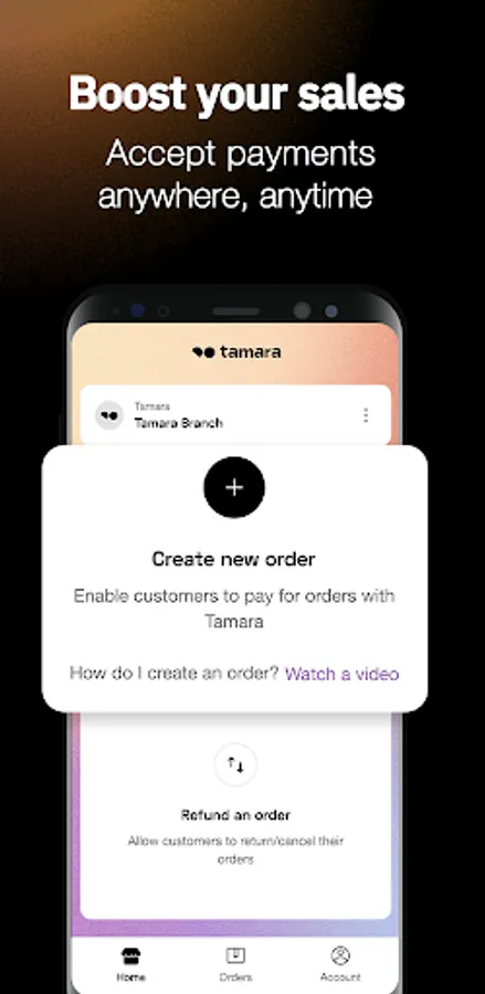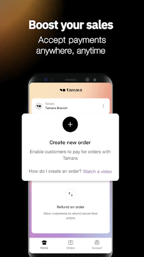 Payments have never been easier and more transparent than with Tamara. With our payment solutions, you’ll be able to give customers the option to shop for their favorite things and split their payments in-store - no fees and no interest. And with our app, you’ll be able to create orders easily and process refunds instantly!