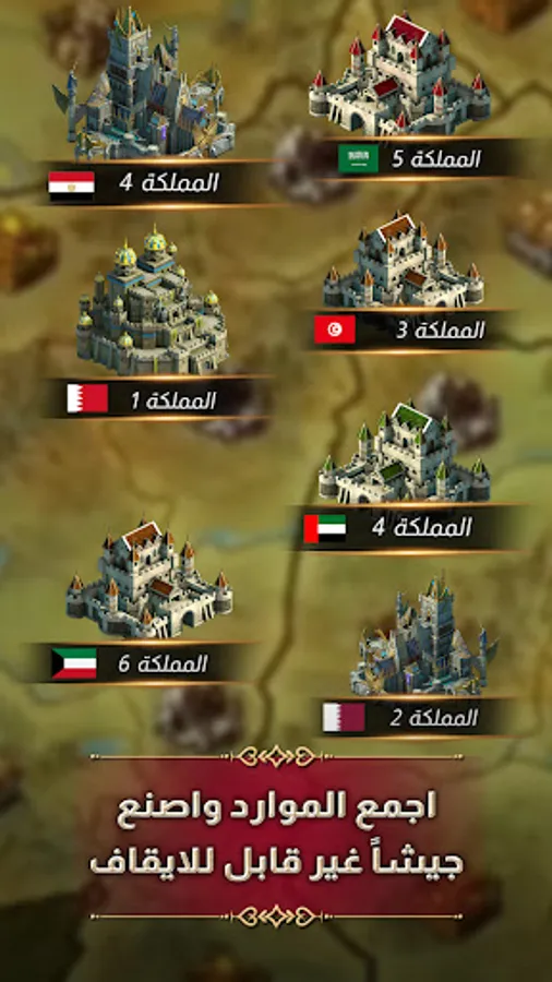 تحدي الملوك هي لعبه حربية استراتيجية MMORPG مليئة بالتحدي والإثارة! حصّن قلعتك وشكّل جيشًا قويًا وانضم لعالم الأساطير ومعارك الـ PvP الملحمية في لعبة عربية مثيرة! و مجتمع عربي كبير
