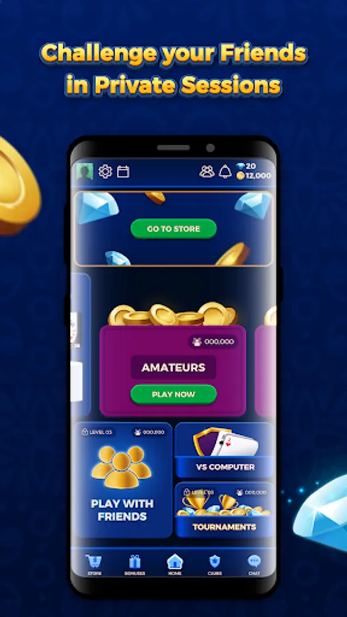 • Create your own customizable Baloot tournaments and play with your friends or with pro Baloot players!