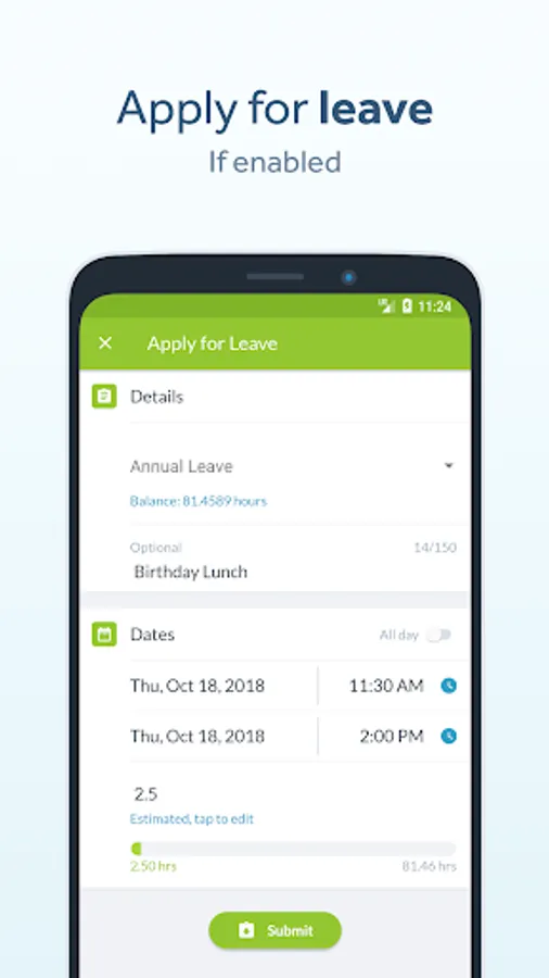 - Manage your time off if your workplace has it enabled
