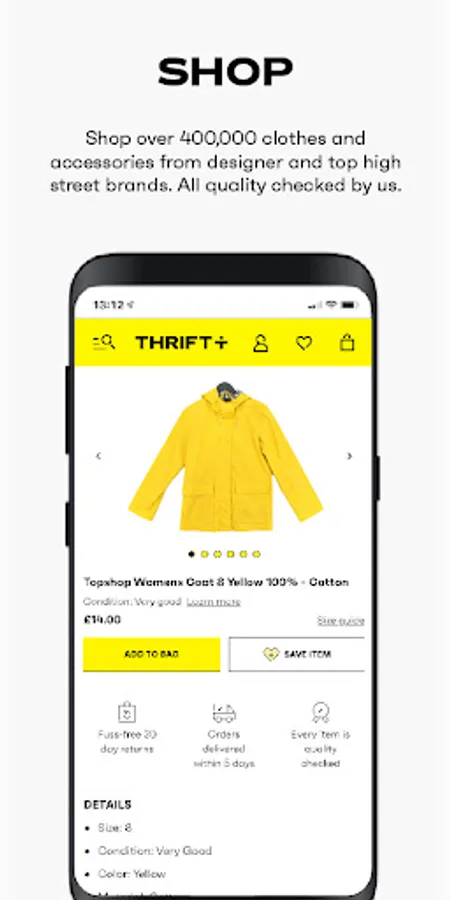 Shop over 400,000 clothes from top high street and designer brands. All quality checked by us. All packaged and shipped by us. Moneyback guarantees and 30 day returns? Another plus.