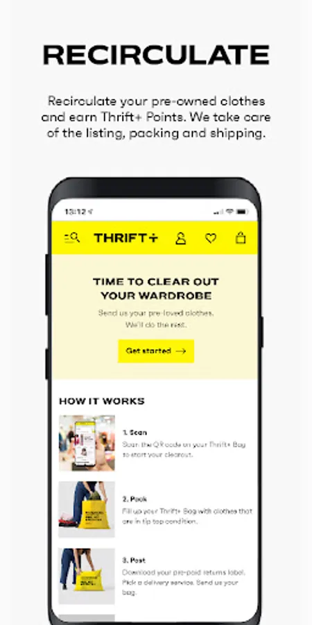 Recirculate your pre-owned clothes and earn Thrift+ Points. We take care of the listing, packing and shipping.