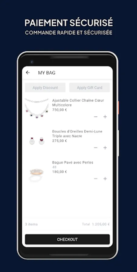 Plongez dans l'univers des bijoux APM Monaco en téléchargeant notre application. Découvrez nos collections, alliant élégance et modernité, et trouvez les bijoux qui ajouteront une touche sophistiquée à votre look ! Bénéficiez d'un accès en avant-première à nos nouvelles collections, vous ne manquerez jamais les dernières tendances. Paiement sécurisé, suivi de commande, échange et retour sous 30 jours, 2 ans de garantie internationale.