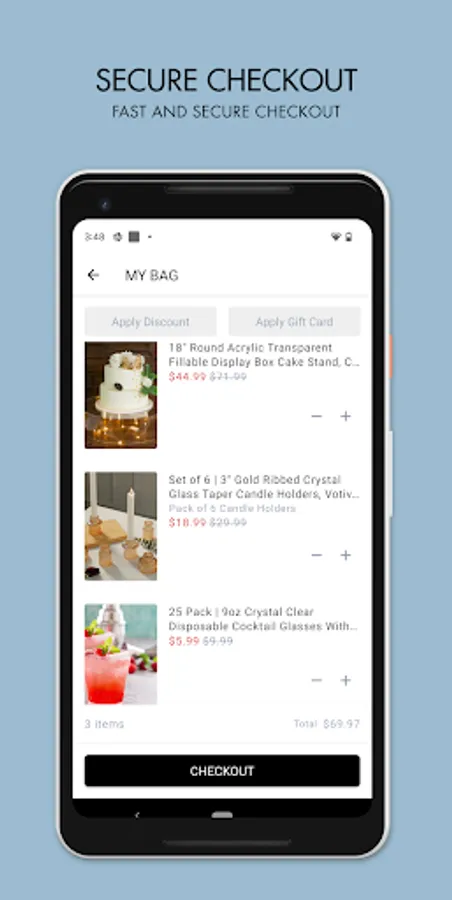 Tap, swipe, shop and secure your new products in an instant with our super easy checkout.