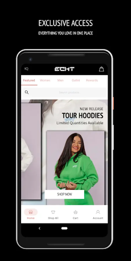 Download the Echt Apparel app to access exclusive discounts, early access to collection launches. Everything you love, right at your fingertips.